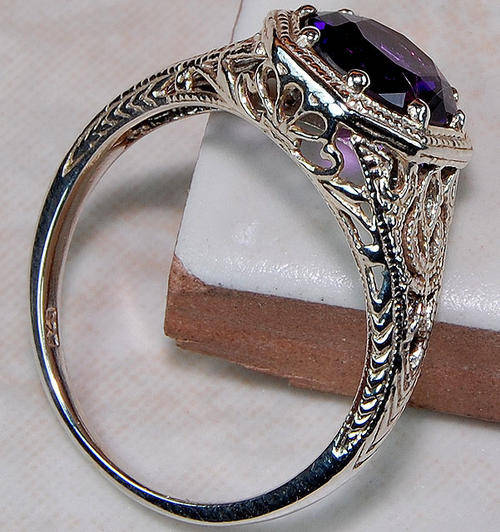 STRIKING AMETHYST .925 SOLID STERLING SILVER FILIGREE RING - FEBRUARY BIRTHSTONE!