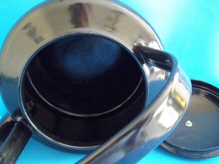 Striking Black Enamel Kettle - Height 26cm - Wonderfully Decorative!