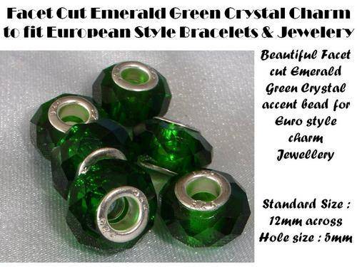 Striking Emerald Green Facet Cut Crystal Bead fits European Style Bracelet/Necklace