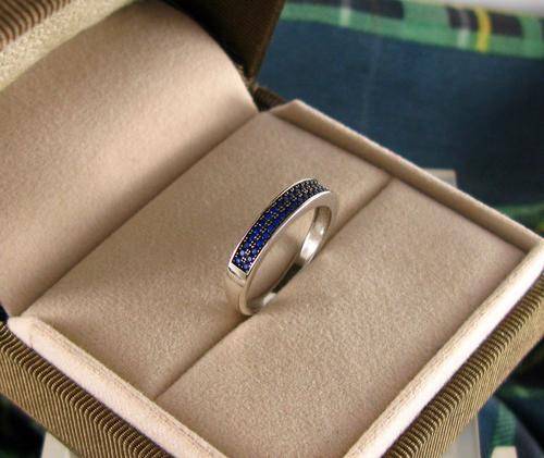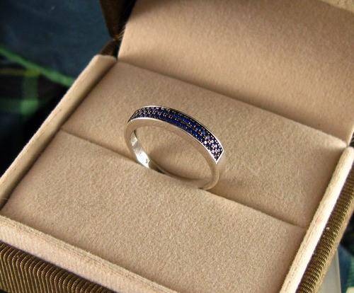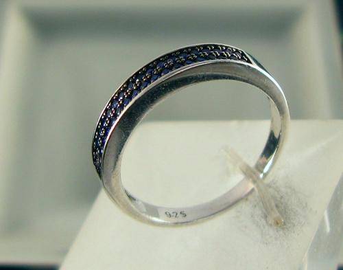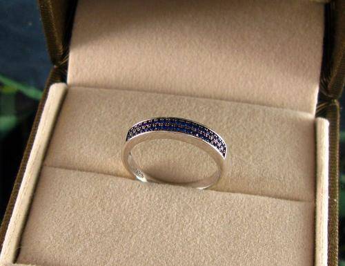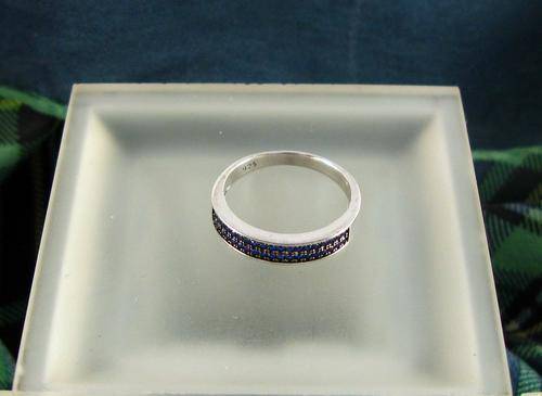 Striking 925 Silver Eternity Ring with Sapphires. Custom Made. Size: 4 mm wide. Size of the ring: M. Weight: 2,2 gram. Condition: Fine. Free Shipping & Insurance!