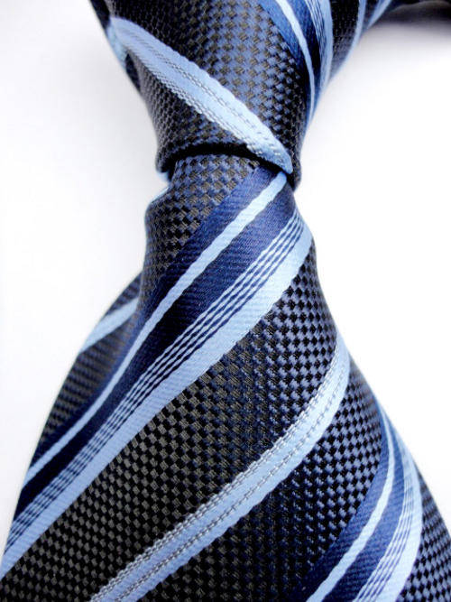 BRAND NEW STRIPED GREY & BLUE 100% SILK NECK TIE + MATCHING CUFFLINKS + MATCHING HANKY