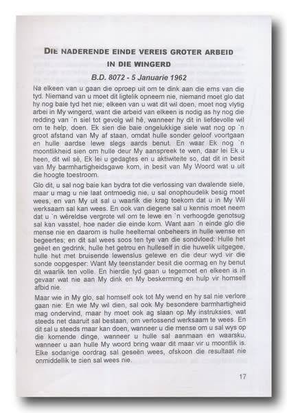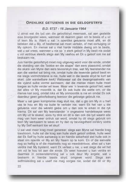 Stryd met die Swaard van die Mond - Boek 18 deur Bertha Dudde (vertaal uit Duits). A5, "Staple"-boekie, 30 bls. Boekie in algehele goeie leesbare toestand.