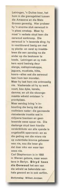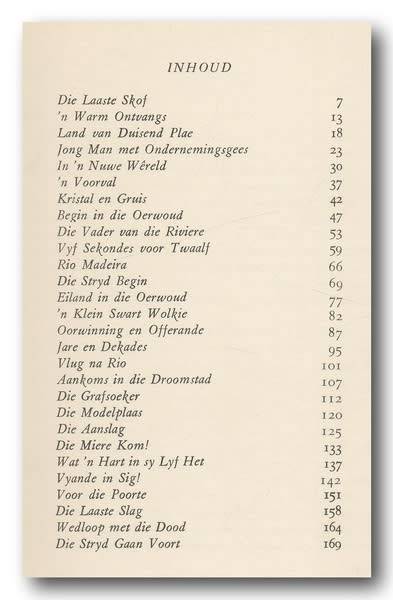 Stryd teen die oerwoud deur Carl Stephenson vertaal deur Albert Crafford (1962). A5, hardeband met stofomslag, 170 bls. Stofomslag redelik verweer. Boek binne in goeie leesbare toestand.