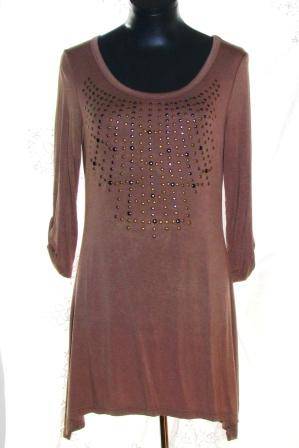 This drape tunic has an easy silhouette that’s casual and cool. Perfect for creating a bohemian look, it’ll pair up nicely with leggings or skinny pants. Tunic features studded tunic neckline, three quater tie up sleeves and made from 100% stretch cotton.