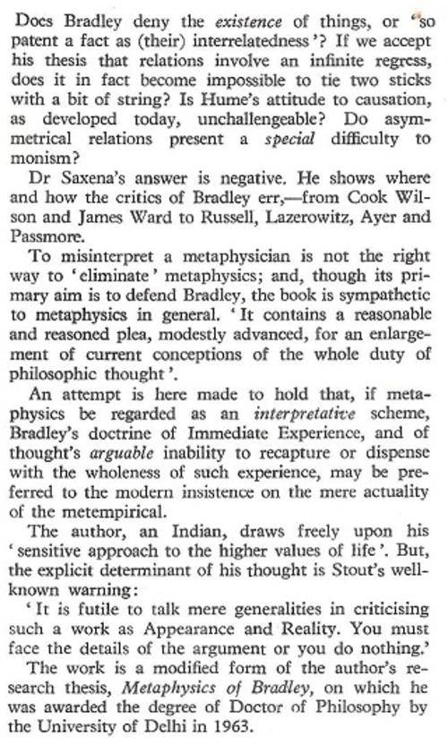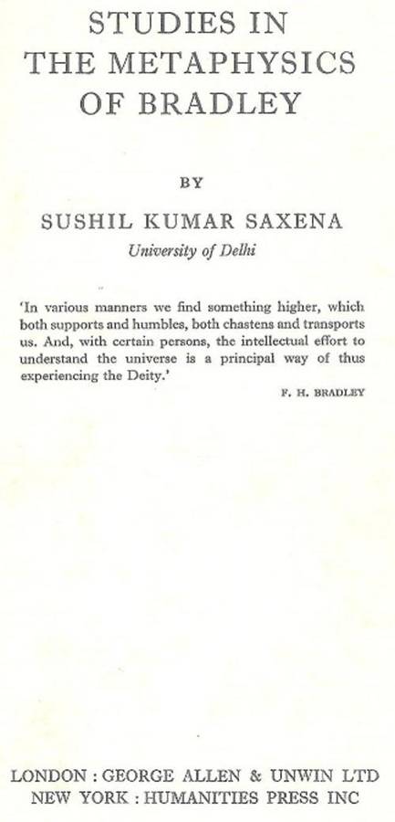 Studies In The Metaphysics Of Bradley - By Sushil Kumar Saxena