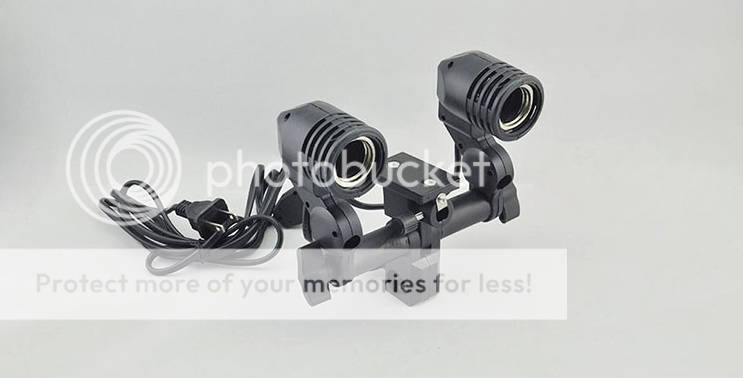 Studio Double Head AC Swivel Socket Umbrella Bracket Flash Lamp Bulb Holder