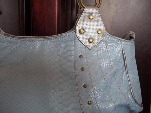 Stunning 100% Genuine leather Hand Bag in a GORGEOUS SNAKE SKIN LOOK IN BABY BLUE and Silver. Invest in leather,the smart choice.