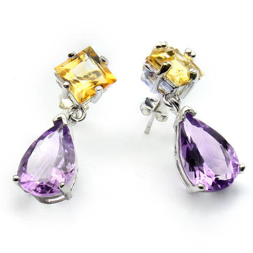STUNNING 13X9MM AMETHYST & 7MM CITRINE & STERLING SILVER W/ PLATINUM EARRINGS