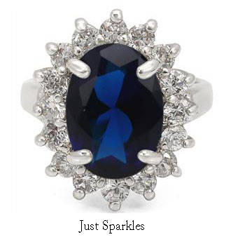 STUNNING 18K WHITE GOLD PLATED SIMULATED SAPPHIRE LADIES RING