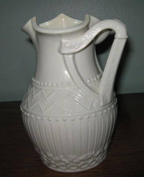 THIS BEAUTIFUL ANTIQUE BELLEEK MILK JUG IS IN MINT CONDITION, AND WAS MADE AT THE BELLEEK CHINA COMPANY. IT CARRIES THE 1ST