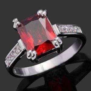 STUNNING 6.0 CT SIM. GARNET 18K WHITE GOLD FILLED RING - SIZE: 9.25