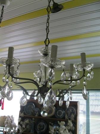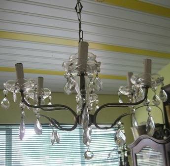 You are bidding on a Stunning Crystal Chandalier with 6 arms and a pressed glass centre arm on the chandalier with glass cups and crystals hanging on all the arms.