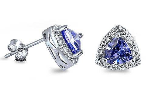 STUNNING 925 STERLING SILVER TANZANITE & DIAMOND CZ RING EARRINGS