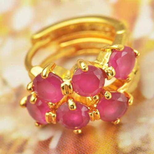 STUNNING! 9ct GF with Ruby CZ Stones Hoop Earrings