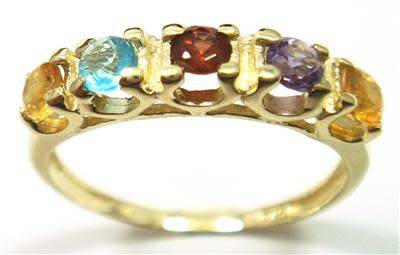 STUNNING 9CT YELLOW GOLD 5 STONE MULTIGEM RING