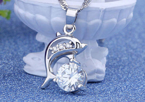 Stunning Amazing 925 Sterling Silver Stamped 2ct CZ Simulated Diamond with Accents Dolphin Pendant