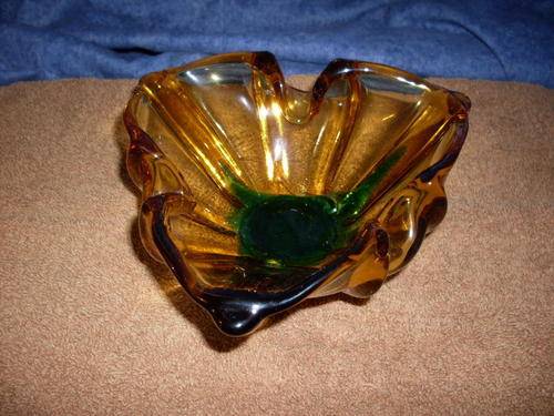 Stunning glass ashtray could be Murano.  Tiny insignificant chips on the base.