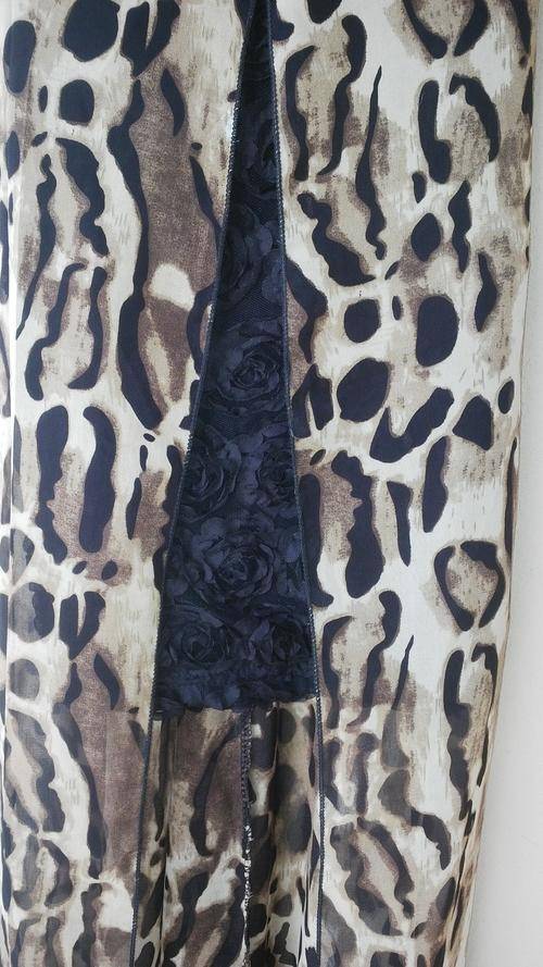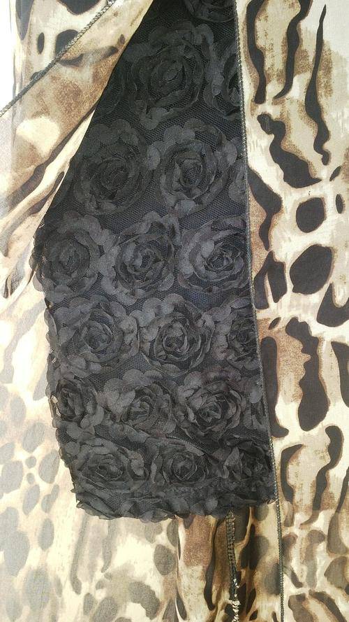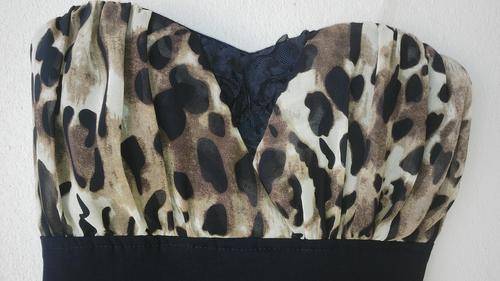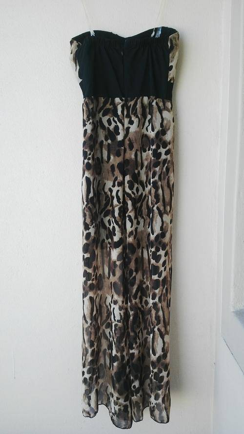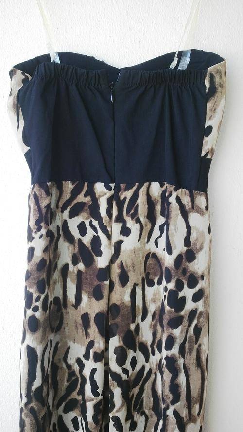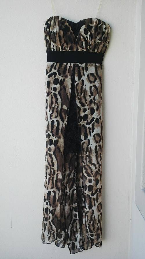 Stunning animal print dress with black flowered mini dress and ancle length animal print outer skirt, optional adjustable clear rubber straps. Condition - New.