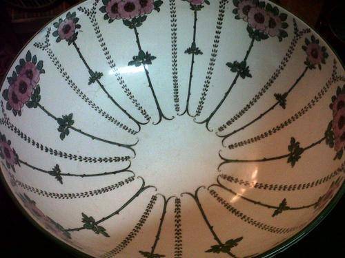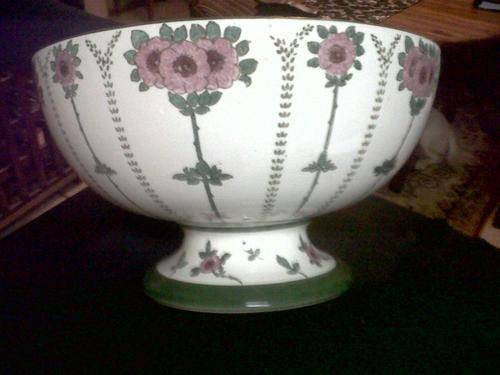 This stunning bowl, made and designed by Royal Doulton c1908, has overall hand-painted detail in the Poppy pattern. In excellent condition with no chips or cracks save for a small amount of crazing in two places due to age on the inside of the bowl, this is an unusual find on the market.
