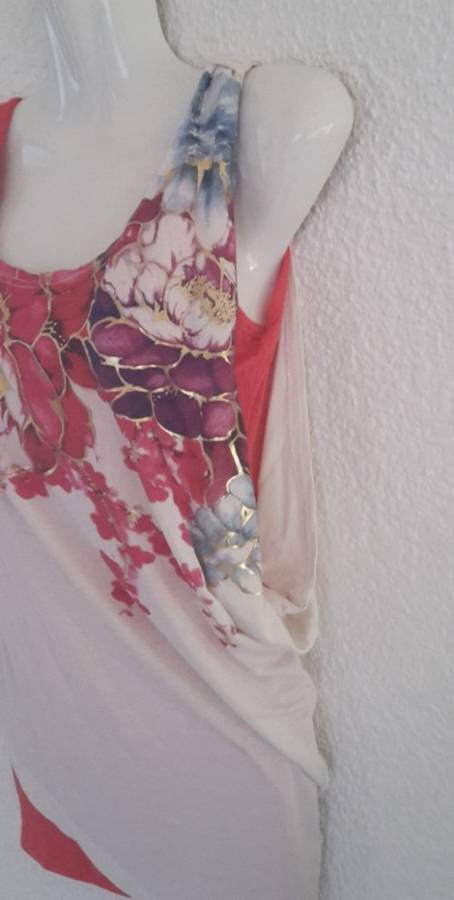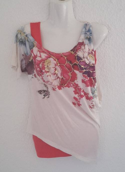Orange/Coral Tank Top overlayed with Off-White Assymetrical Top