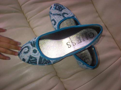 STUNNING BLUE GUESSSUE LARA SEQUIN PUMP WITH STONES - SUPER COMFY SIZE 5 PUMPS