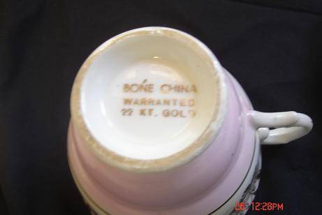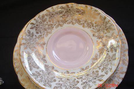 STUNNING BONE CHINA TRIO, 22KT GOLD DESIGN