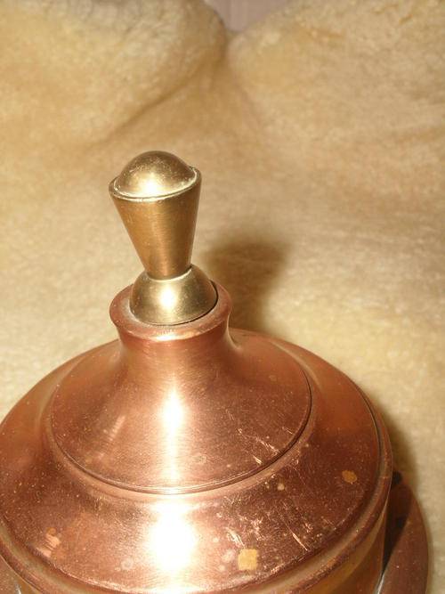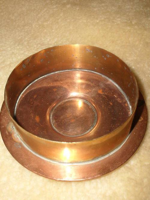 STUNNING BRASS AND COPPER BUTTER DISH.