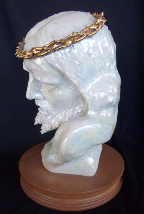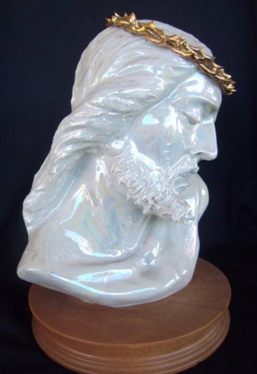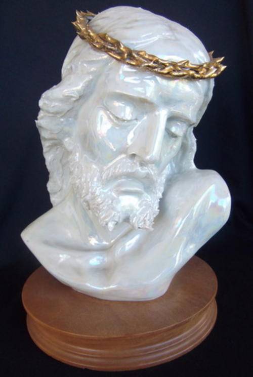 STUNNING CERAMIC JESUS BUST - MOTHER OF PEARL AND GOLD