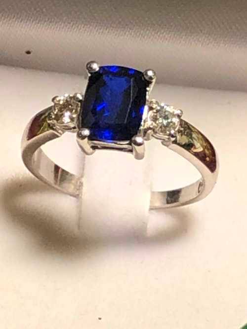 BREATH TAKING STUNNING NATURAL CERTIFIED 1.8 ct BLUE SAPPHIRE MEASURE 8 mm x 5 mm AND DIAMONDS 18 ct WHITE GOLD RING.ONE ROUND BRILLIANT ON EACH SITE 0.10 ct EACH SI- 1 COLOR J. AND 0.20 ct IN TOTAL. THIS IS A NATURAL NOT TREATED FLOW LESS BLUE SAPPHIRE. VERY LOW PRICE.