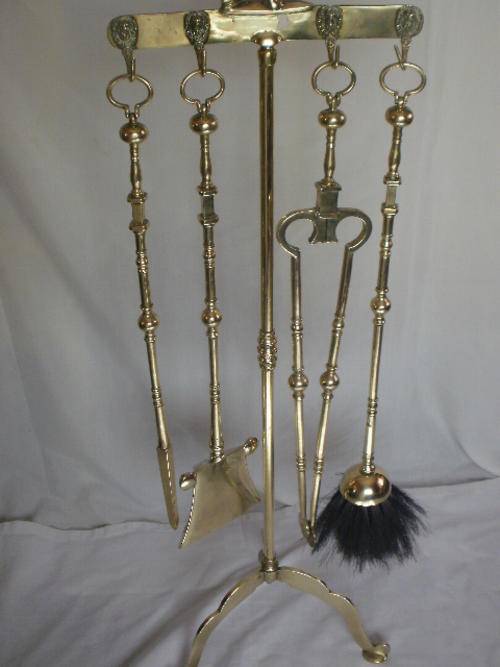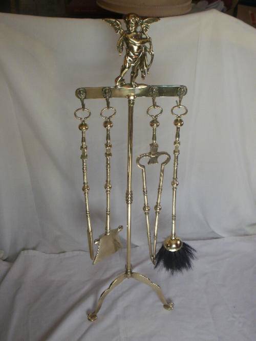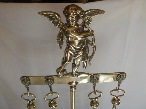 STUNNING CHERUB BRASS FIRE PLACE SET