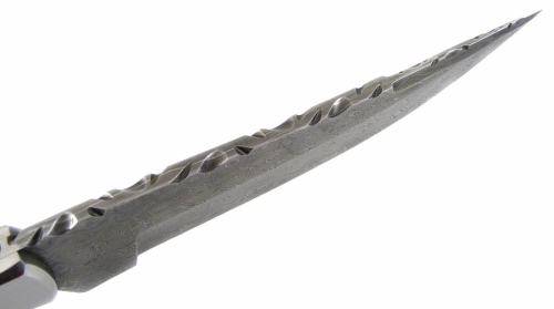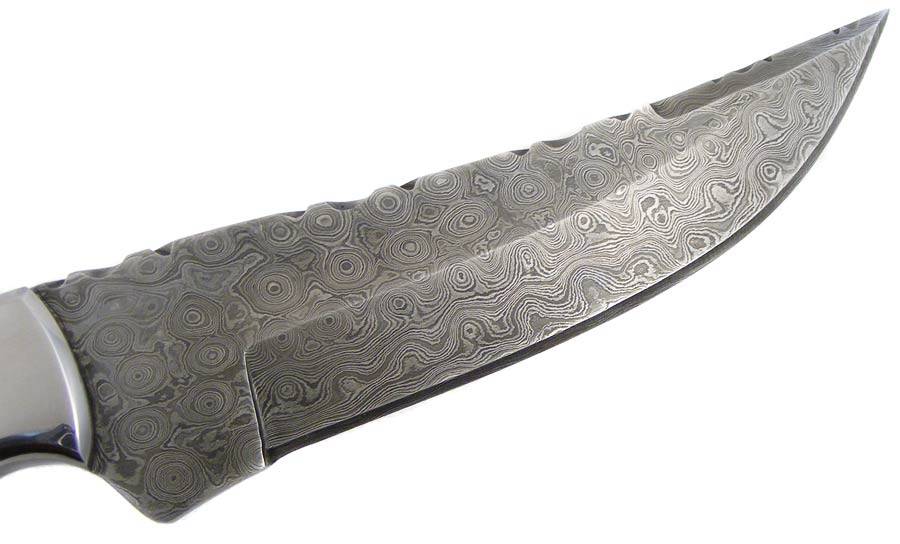When acid is applied to the blade, it attacks the layers of hard and soft steels differently, highlighting the attractive layered patterns in the steel.
