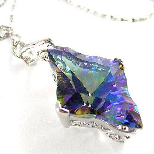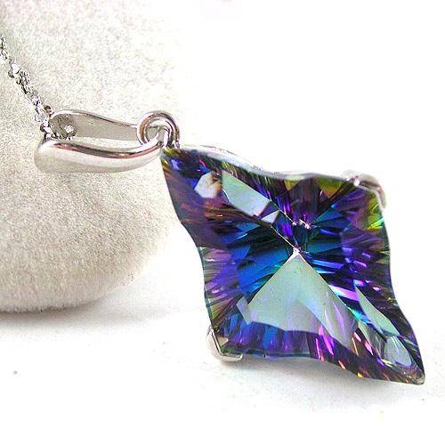 STUNNING DESIGN 16ct Genuine Fire Mystic Topaz Pendant 925 Sterling Silver