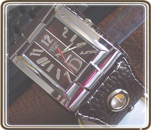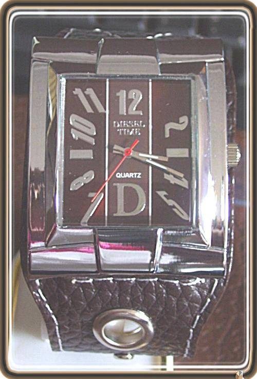 Smart Brown Square shaped watch face Diesel Time on the watch face in silver Large hour numbers on the watch face in silver Smart watch strap with white stitching Very smart! This is not a Brand name
