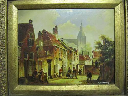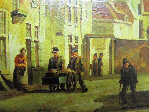 This stunning frame houses an original oil painting of a finely detailed masterpiece of a Dutch Village Scene of buildings and street scene. The brush strokes are that of a master artist - extremely fine and layered in many hues to form the whole picture (see photos!).