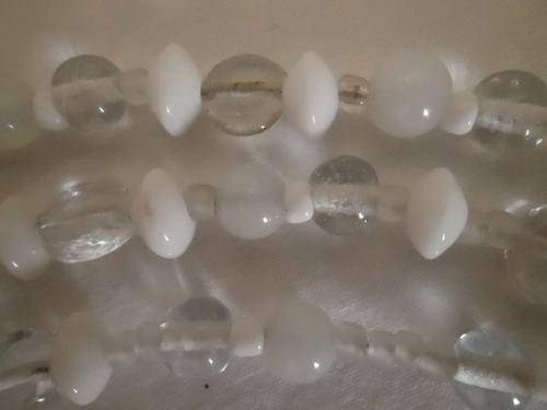 STUNNING ELEGANT VERY LONG WHITE, CLEAR & MILKY GLASS BEADS NECKLACE, 175 cm