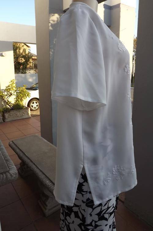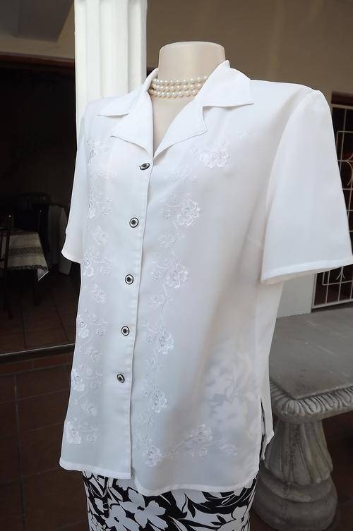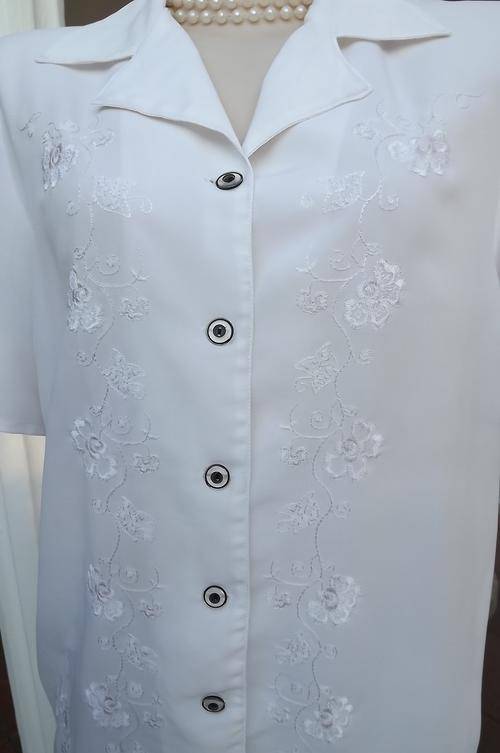 Stunning embroidered white button down polyester blouse size 40/16 by Blue Dress.Good condition