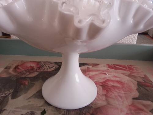 STUNNING FENTON LIKE BOWL / COMPOTE / TAZZA WITH FRILLY EDGE