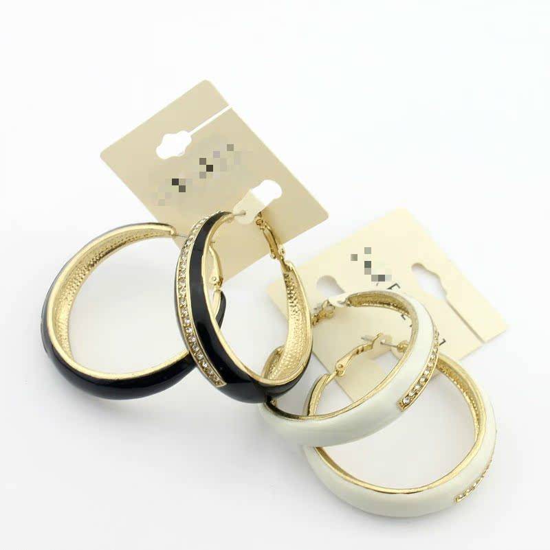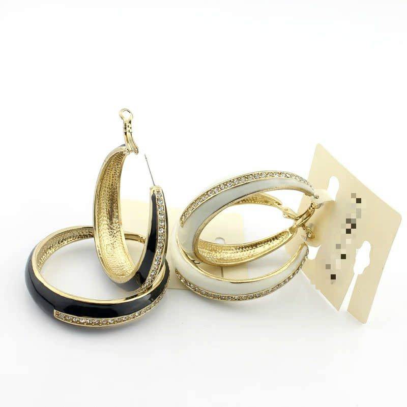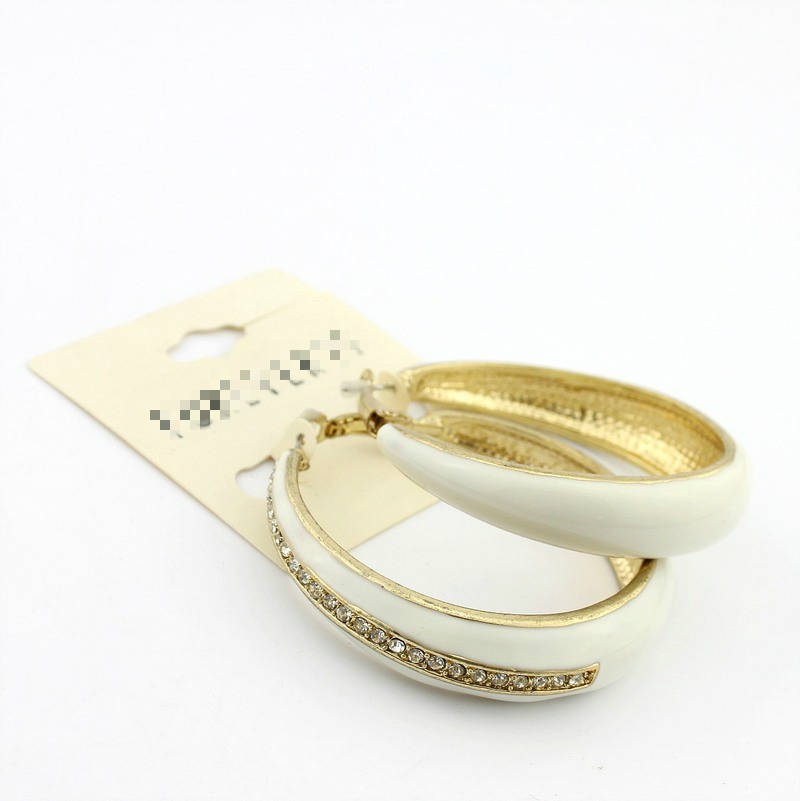 STUNNING ! - Forever 21 Style Elegant Hoop Earrings With Gold Trimming and Rhinestones