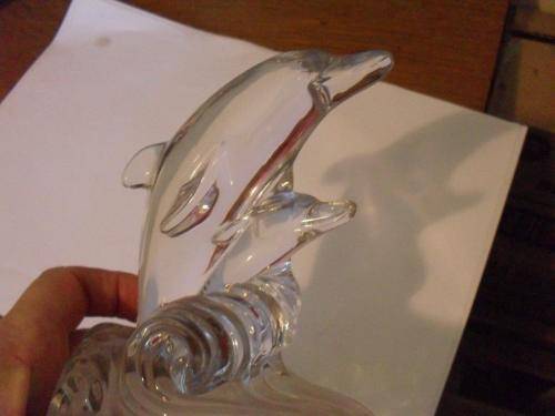 STUNNING GLASS DOLPHIN WITH BABY DOLPHIN ORNAMENT....