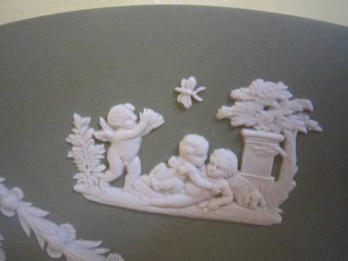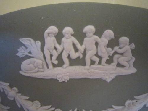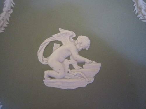 Wow, this is a really special specimen of Wegewood ceramics, the whole plate is covered by different scenes depicting angels with the most stunning Art Nouveau garland separating each one . This plate is in beautiful condition, measures 23cms long and 2.5cms high, postage will be 65.00.