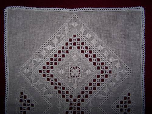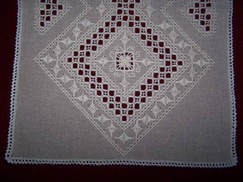 Absolutely stunning, and very detailed, Hardanger hand embroidered tray cloth, hand crocheted border. Origin Scandinavia.