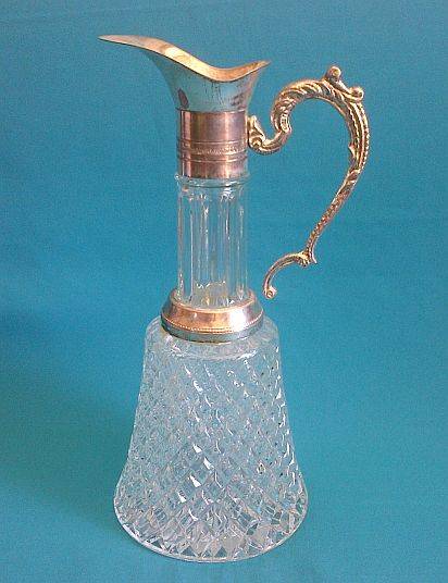 STUNNING HEAVY GLASS & SILVER PLATED DECANTER/ CLARET JUG.
