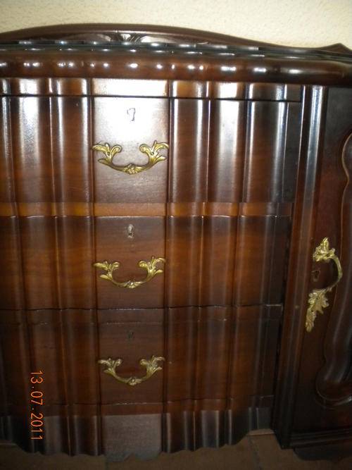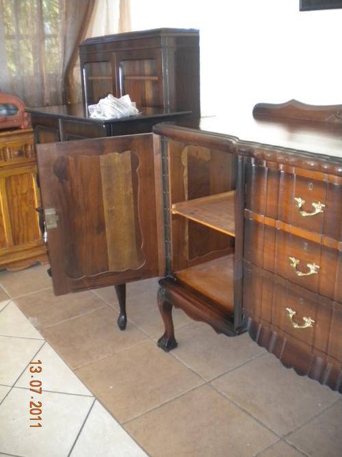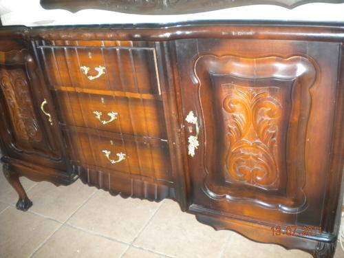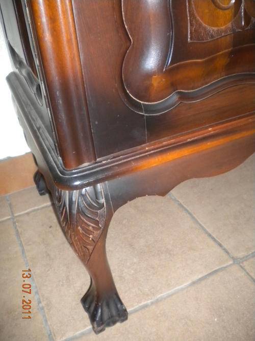 Really stunning ball and claw server with three linen pleat drawers, two side openings and beautifull carved detail very heavy. has original handles and key. Circa 1950. also has original glass top not shown in pics as reflect to much. Also have matching table listed.