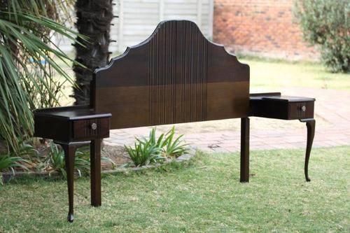 THIS AWESOME IMBUIA QUEEN SIZE BEDROOM SET IS IN GREAT CONDITION FOR THE AGE AND COMES WITH TWO DRAWERS - ONE EITHER SIDE!!! PLEASE VIEW THE PICS VERY CAREFULLY FOR MORE DETAIL AND CONDITION AS THE PICS ARE VERY MUCH PART OF THE DESCRIPTION. WHAT YOU SEE IS WHAT YOU GET!!! POSTAGE AND PACKAGING WILL NOT BE POSSIBLE SO PLEASE ARRANGE FOR COLLECTION IN EDENVALE!