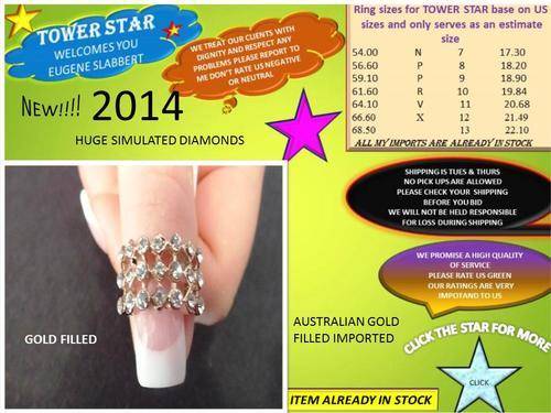 STUNNING ITALIAN DESIGNER GOLD FILLED RING WITH CZ DIAMOND SIZE 17 &18