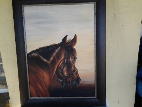 please note this is rather large postage will be around R 200 via the door pick up can be arranged in the howick area if wanted large and stunning horse painting on canvas item in good used condition