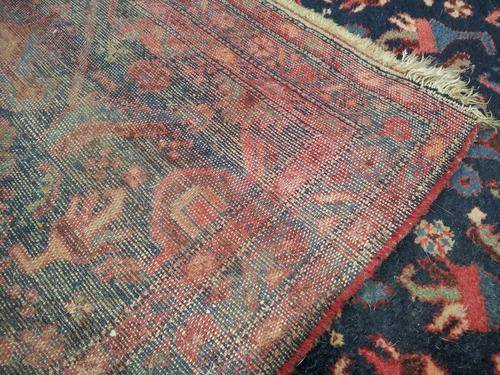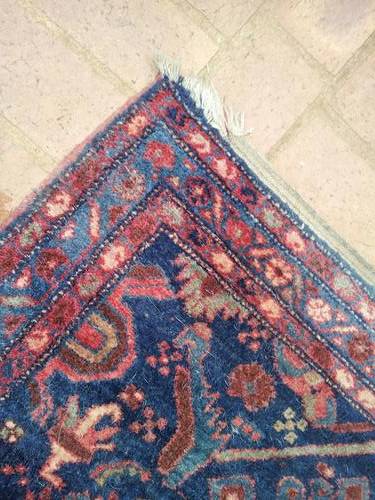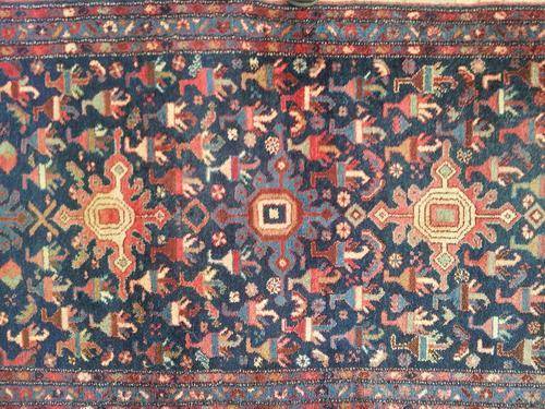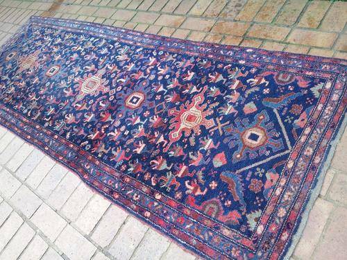 In very good condition for its age, this very old hall carpet does not have any tag underneath, however judging from the weave and thickness it does seem to be a genuine Persian carpet!