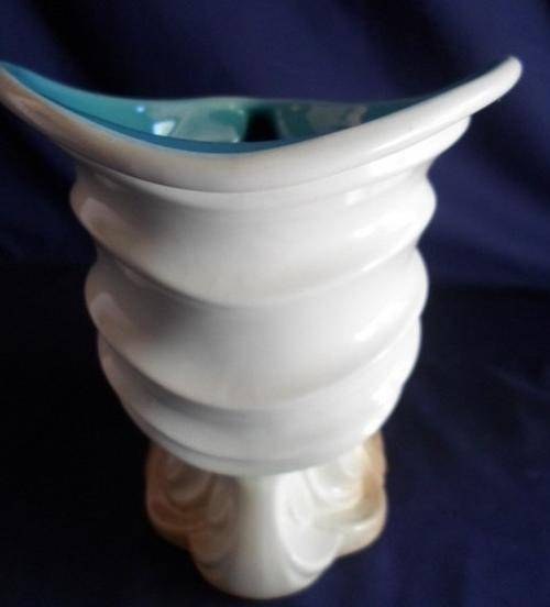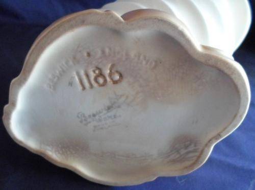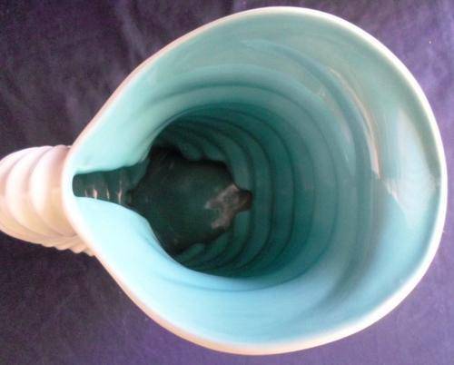 24CM X 13CM AND 18.5CM TALL AND IN EXCELLENT CONDITION WITH NO CHIPS OR CRACKS. CREAM VASE WITH THE MOST BEAUTIFUL TURQUOISE INTERIOR. MARKED 'BESWICK./ENGLAND/1186/BESWICK WARE/ MADE IN ENGLAND' ON BASE. VERY RARE IN SUCH GOOD CONDITION. REFER IMAGES