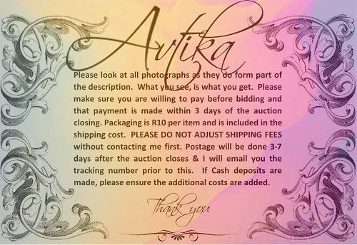 R65.00 Standard shipping applies to orders under R100.00, in most areas in South Africa. R35.00 Standard shipping applies to orders over R100.00. Some areas may attract a surcharge surcharge. This will be calculated at checkout if applicable.