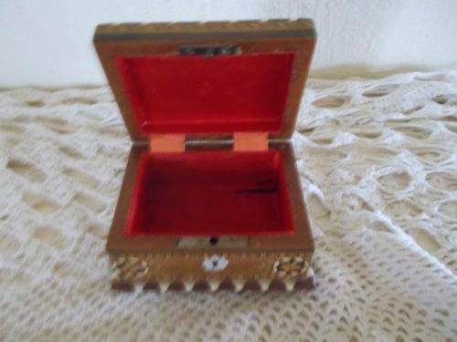 Stunning little wooden inlayed trinket box item there is a slight bit of damage noted on the side of this box other wise still lovelyplease have a look at my other listings *free sprit*Thank you